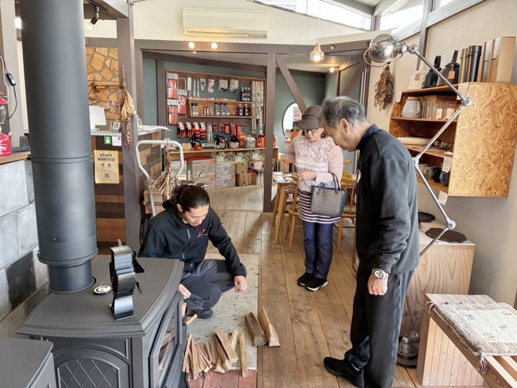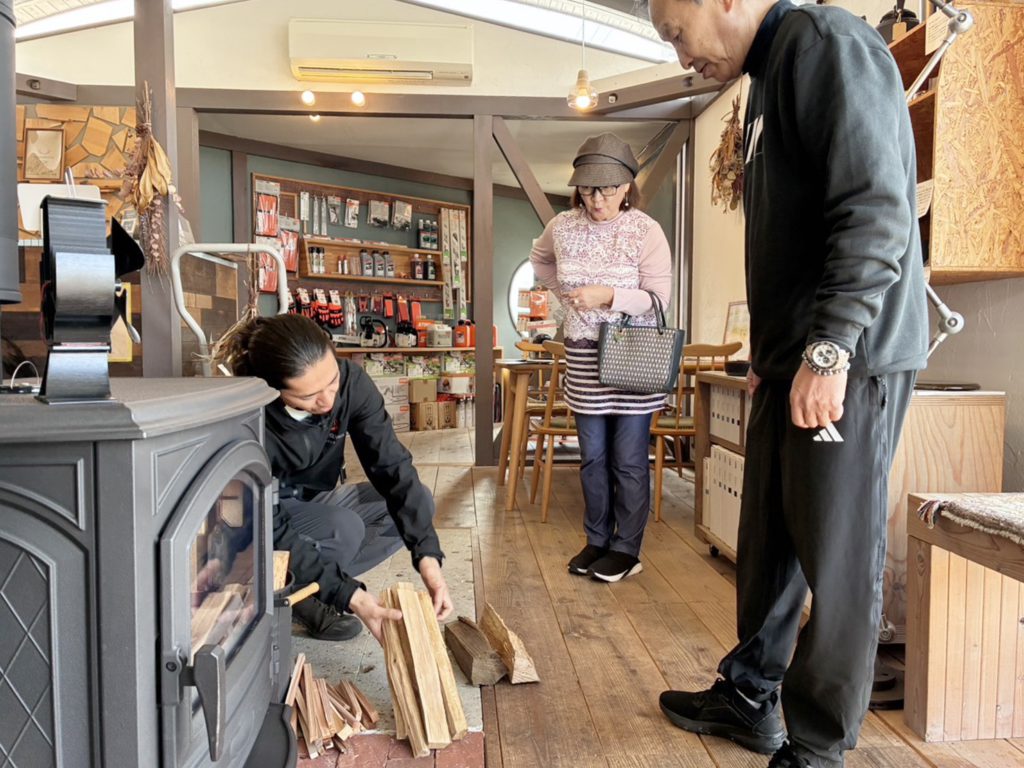 商品説明を受けたり、焚き付けを体験してきたりしました♬