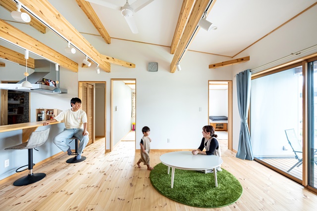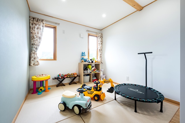 平屋で部屋が見渡せるので、子供が違う場所で遊んでいても安心出来る良さがあります。最近は子供と一緒に、リビングで車のラジコンを走らせて遊ぶのがブームです。