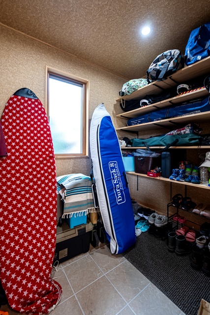 間取りの打ち合わせが楽しかったのが良い思い出です。ベビーカーがそのまま入る土間収納には こだわりました。夫婦でサーフィンをやるのでボードの収納場所も欲しかったし。設計の定方さんがアドバイスしてくれて、僕達の暮らしに合う間取りが完成したと思います。