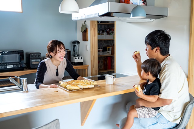 子供も喜んで食べてくれるので、家族のために作るのが楽しいんです。お友達が遊びに来た時にふるまったり、普段も焼けたものをカウンターに並べたりしています。暮らし始めてから趣味が増えました。 (奥様)
