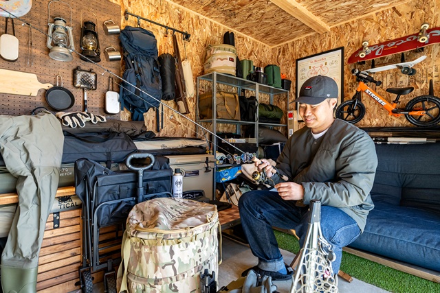 子どもが生まれてから、夫婦で楽しんでいたキャンプは少しお休みしています。実は僕 釣りを始めまして(笑)最近は1人の時間も楽しんじゃったり、ちょっと道具も増えちゃったり。 アウトドアストッカーの壁をOSB合板にしてもらったので、自分でガシガシ釘が打てるのでいいですよ。どんどんカスタマイズしていますが、ここの部分だけは妻は一つも干渉せずに見守ってくれています。 (ご主人様)