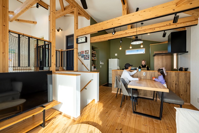 夫が楽しそうにしているのを見ているのが、楽しいです。 私の父もキャンプ好きなので「この家は面白い!」と言ってくれています。友達には「梁が出ているのがかっこいい」と褒められます。 (奥様)